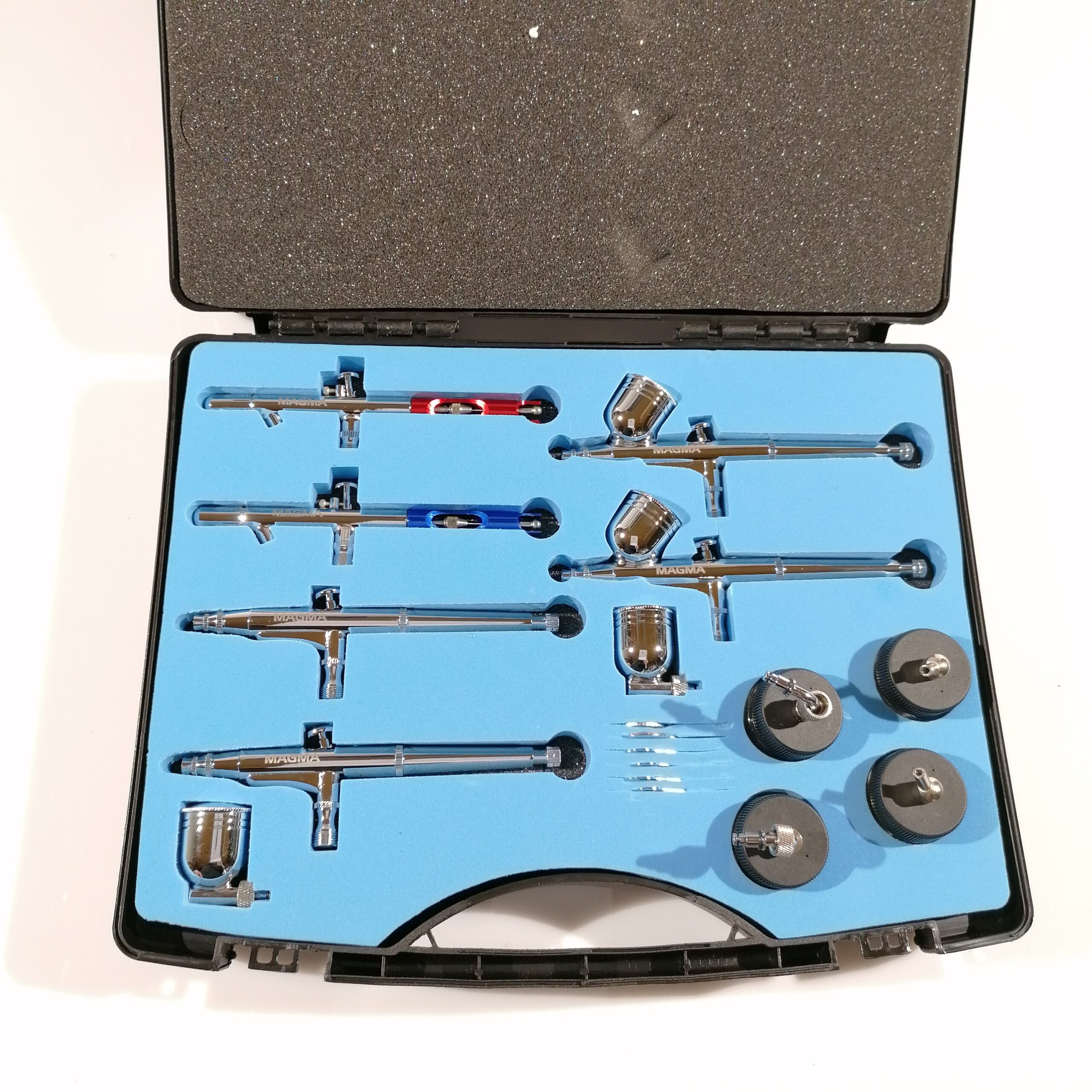 Suur aerograafide komplekt sisaldab kompressorit, kolme aerograafi ja tarvikuid. Ideaalne lahendus nii algajale kui ka edasijõudnud kunstnikule.