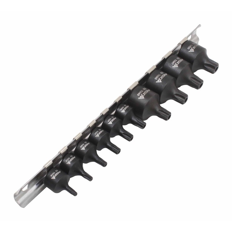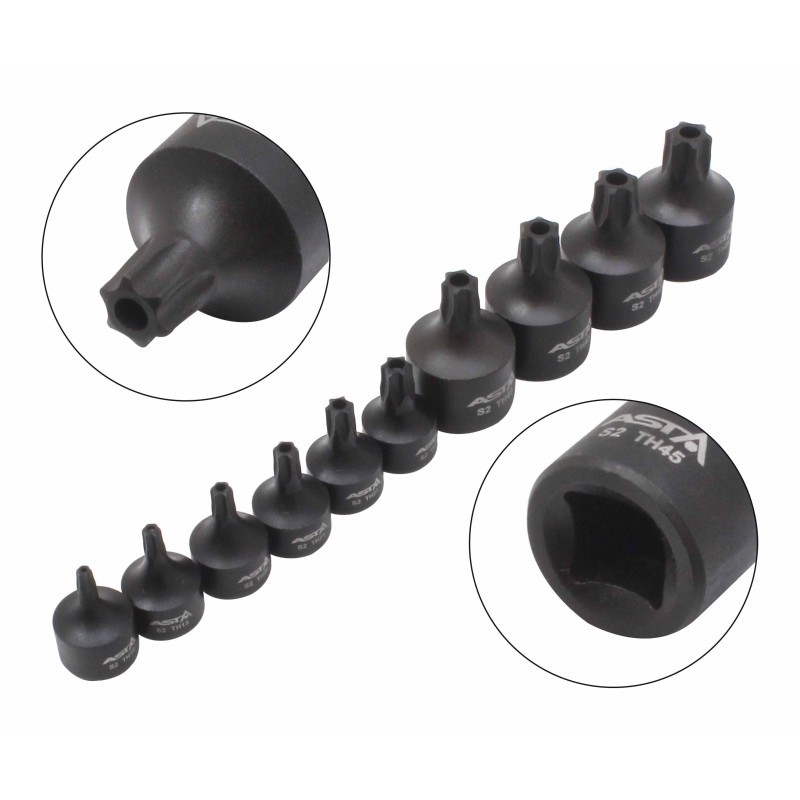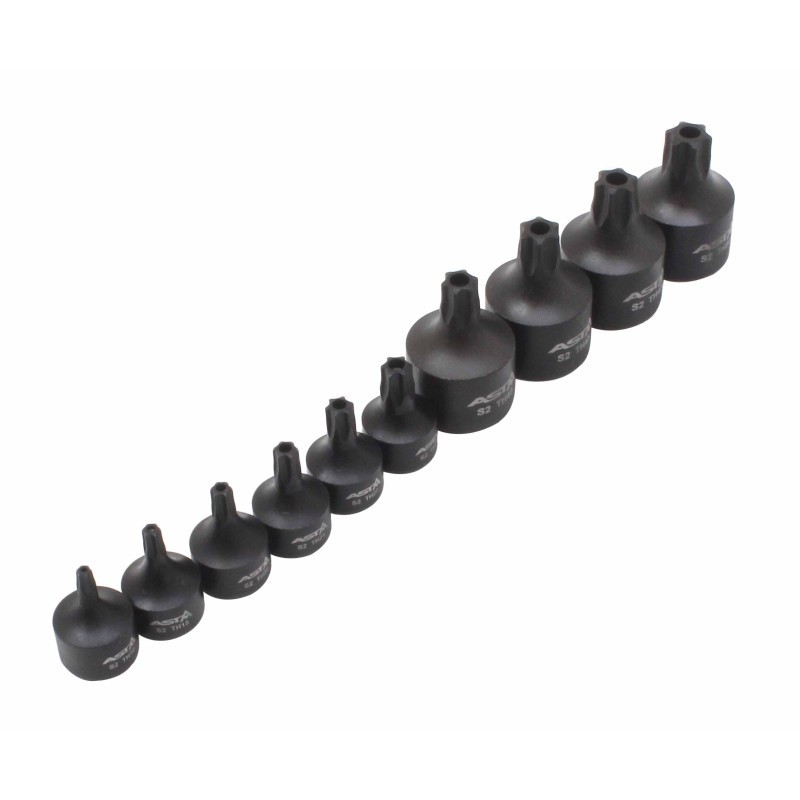 See on 10-osaline ASTA kaubamärgi TORX-tüüpi löökpadrunite komplekt, millel on madal profiil. Need on mõeldud kasutamiseks kitsastes ja piiratud ligipääsuga kohtades.