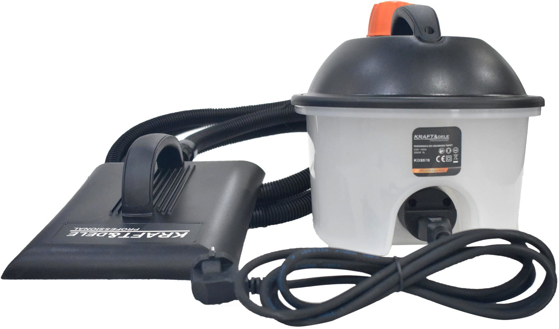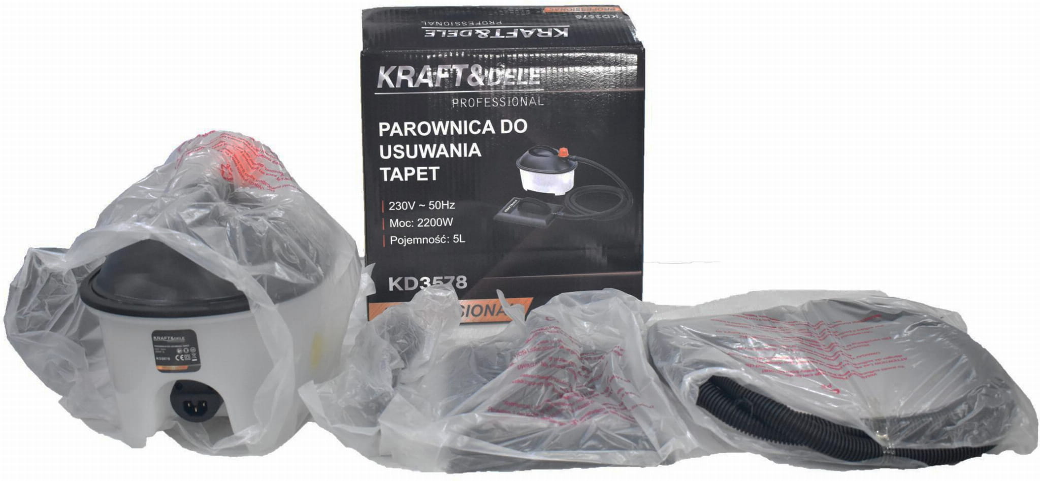 Komplekti kuulub: Tapeediaurutaja, 5L paak küttekehaga, painduv auruvoolik, tapeedi aurutusotsik, tühjendusvoolik, poolakeelne kasutusjuhend.