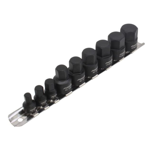 See ASTA löökpadrunite komplekt on mõeldud kasutamiseks löökmutrikeerajatega ja sisaldab 9 tollmõõdus HEX-otsikut. Padrunid on valmistatud Cr-Mo (kroom-molübdeen) terasest.